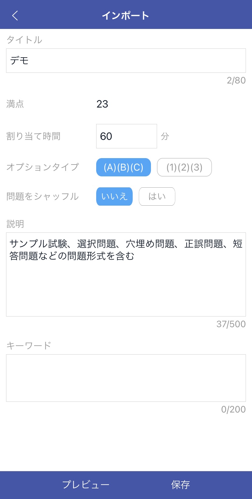 3. MTestMがファイルのインポートを開始します。インポートが完了すると、以下のページが表示され、プレビューをクリックして内容をすばやく確認できます。