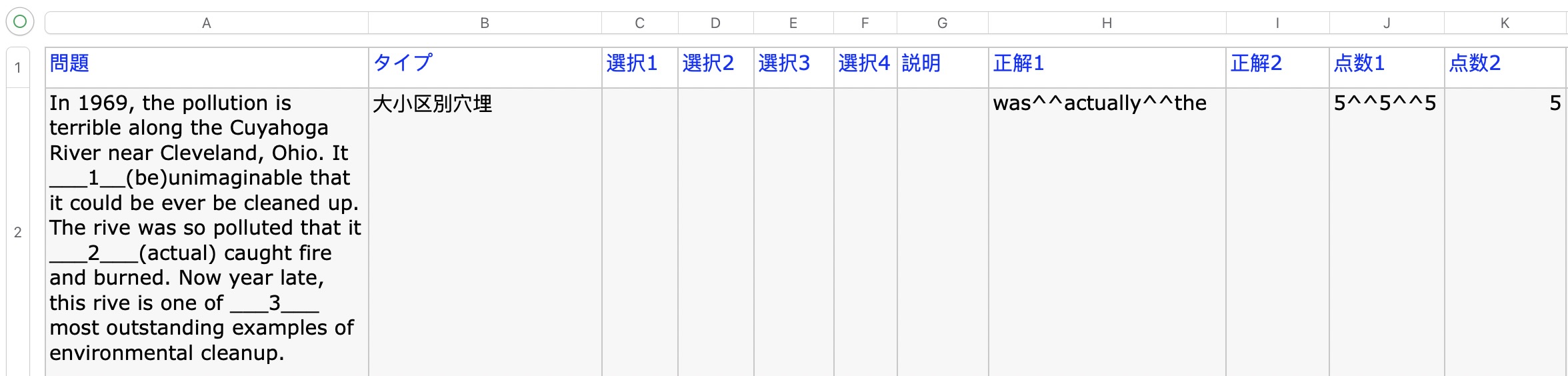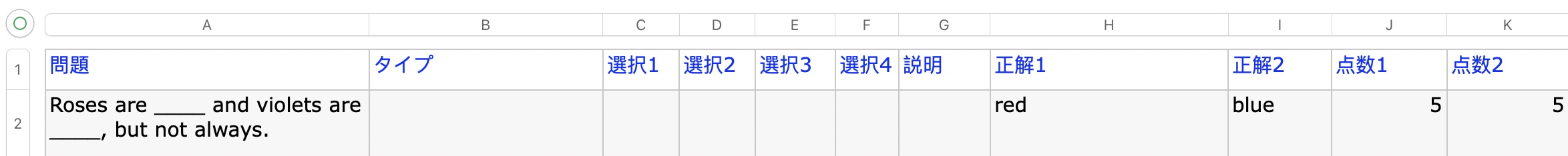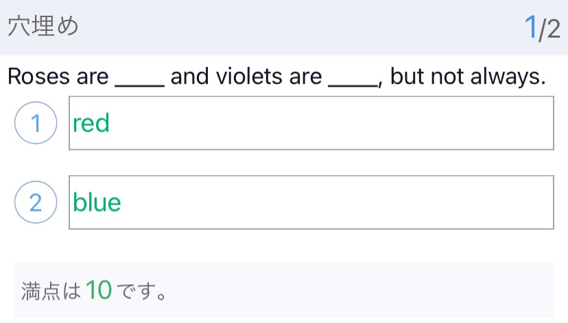 複数穴埋め問題は、複数の記入項目を持つ問題の一種です。各穴埋め項目には個別の正解が設定されています。