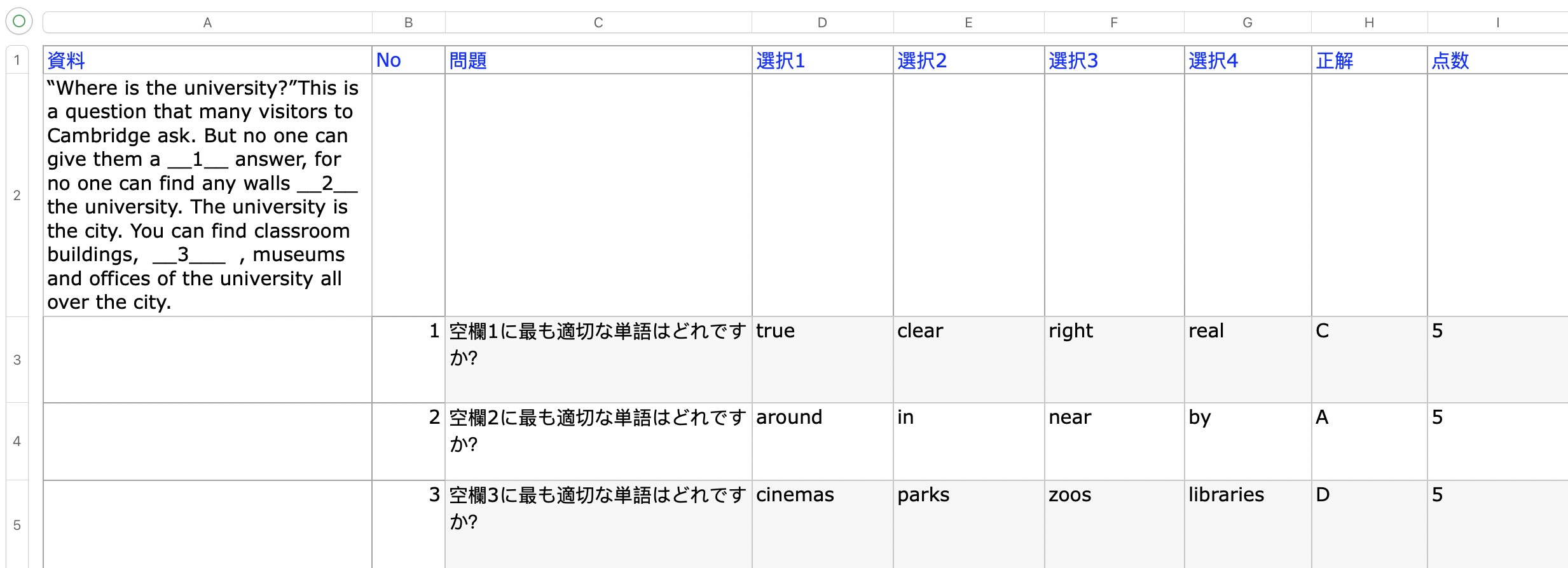 以下のボタンをクリックしてテンプレートファイルをダウンロードし、ファイル内にご自身の問題を追加してください。