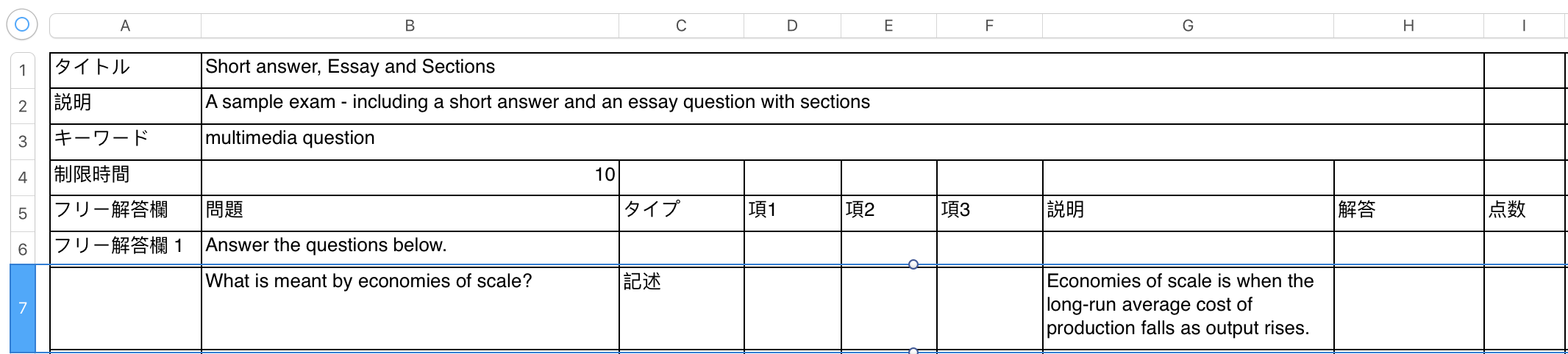 これらの問題を出題したい場合は、フリー解答欄を追加することができます。