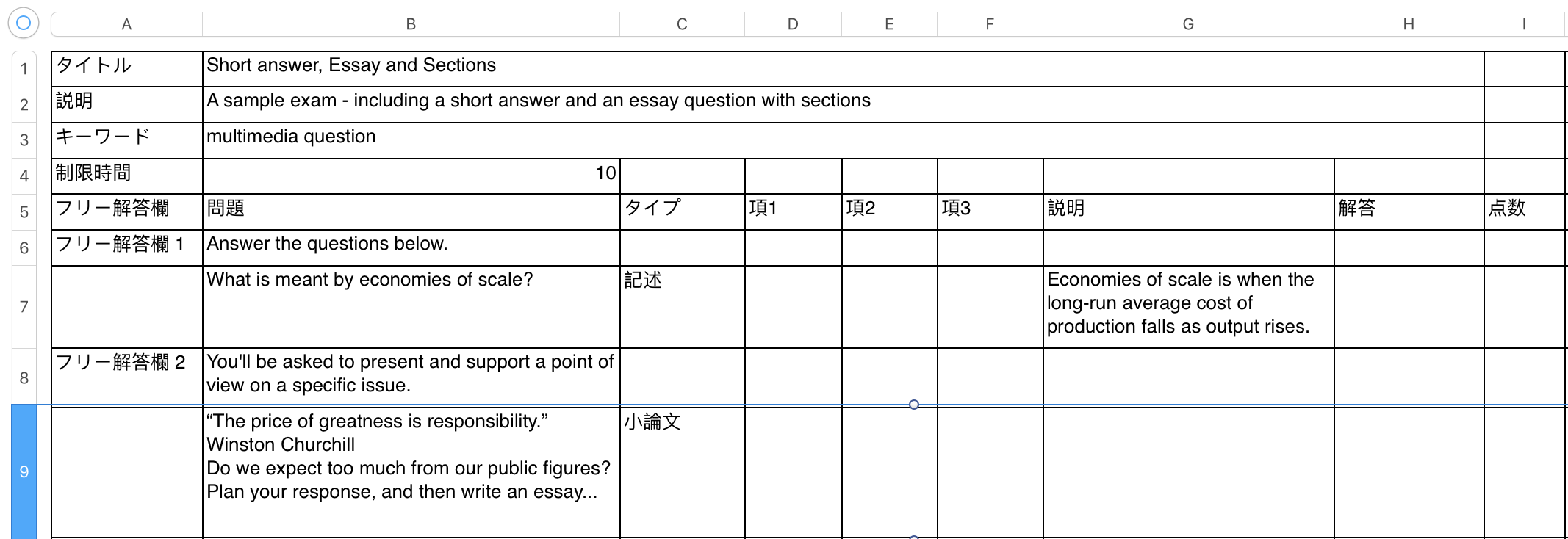 記述問題は生徒が解答を作成する自由な形式の問題です。小論文は与えられたテーマに関しての分析または説明をする問題で、通常は長さが指定されています。これらの問題はMTestMではサポートされていません。