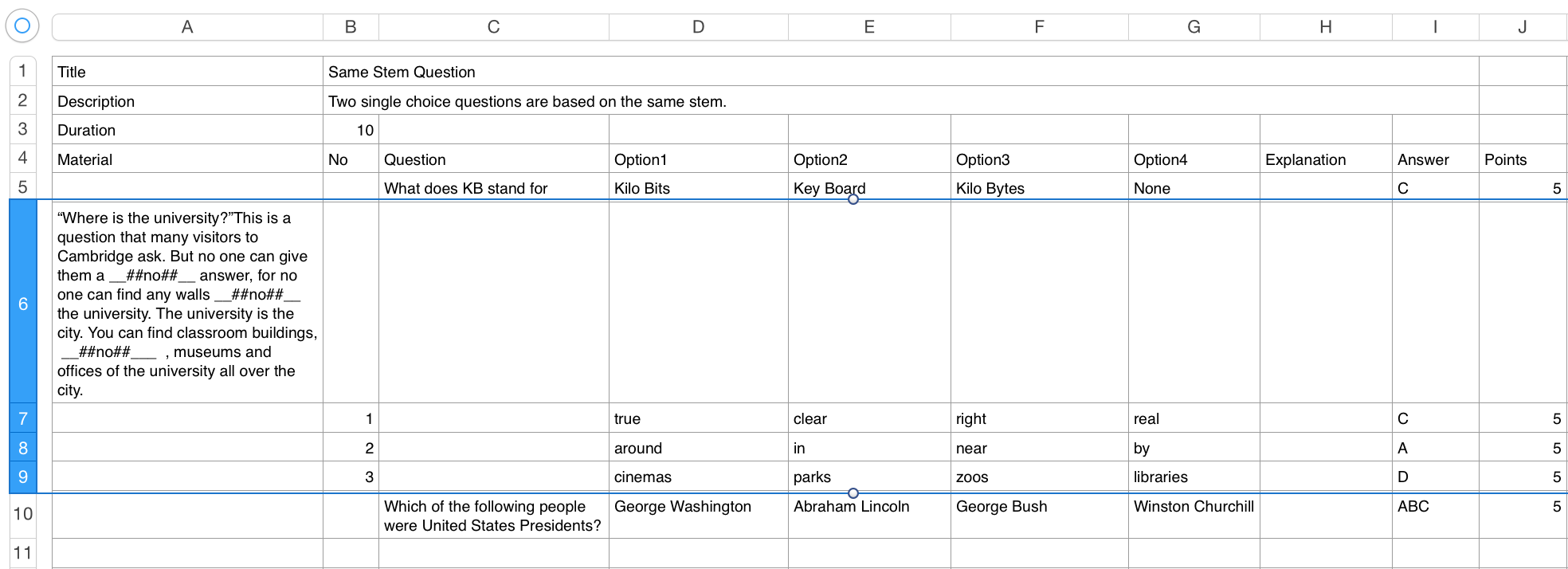 Material: The stem for multi-questions. Please keep other cells empty in this row.In the Material cell, there are tags ##no##. They will be replaced with the actual question numbers when you take the exam.No: The question numbers starting from one. Please keep this cell empty if the question is not based on the upper stem.